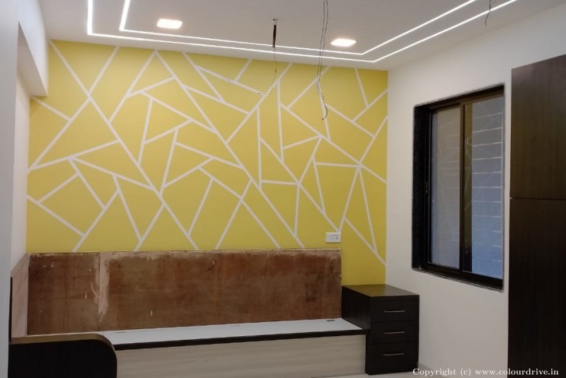 Procedure Details: Interior Painting:- Asian Paints - Royale Shyne on Interior walls & Ceiling Stencil Painting:- Geometric design on Master bedroom False Ceiling:- Wooden design on Living Room